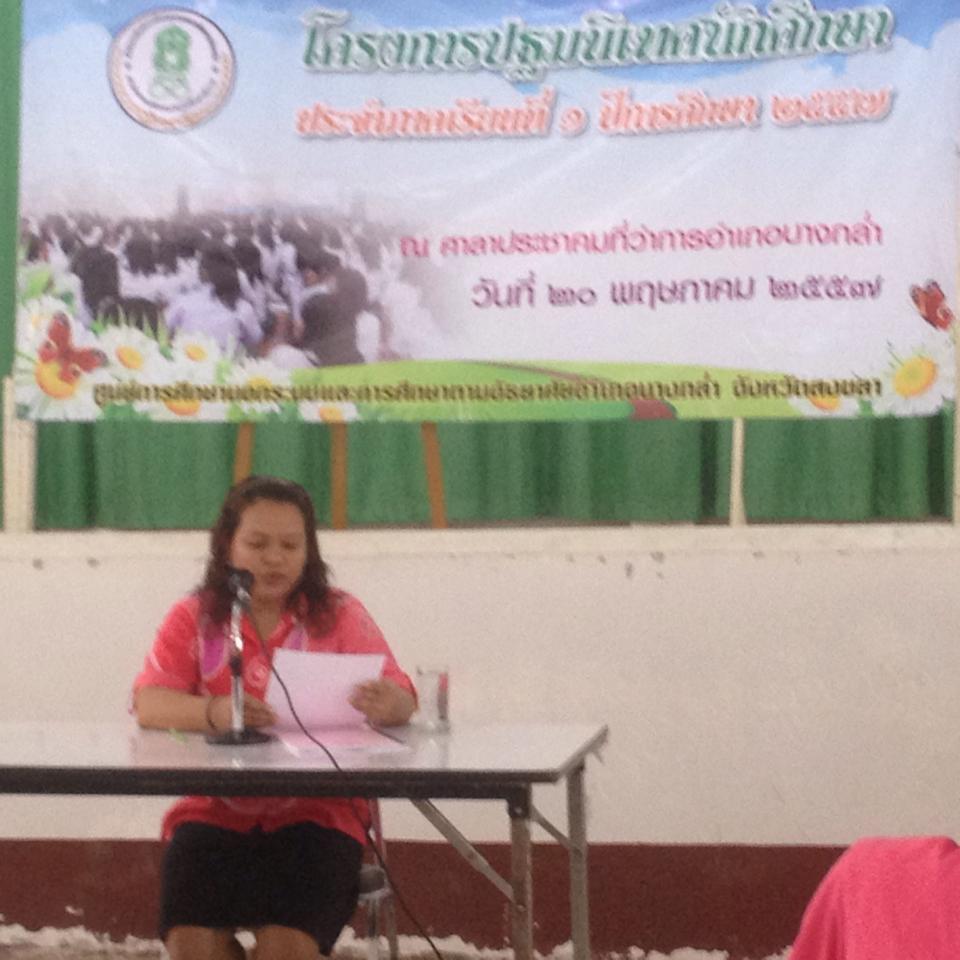 ศูนย์การศึกษานอกระบบและการศึกษาตามอัธยาศัยอำเภอบางกล่ำ จังหวัดสงขลา ได้จัดกิจกรรมโครงการปฐมนิเทศนักศึกษาใหม่ 1 ปีการศึกษา 2557 ในวันอังคารที่ 20 พฤษภาคม 2557 เวลา 13.00 น. - 16.30 น. โดยมีนายศิริพงค์ บัวแดง ผอ.ศูนย์ กศน.อำเภอบางกล่ำ เป็นประธานร่วมกับคณะครูและเจ้าหน้าที่เกี่ยวข้องเป็นผู้ให้ความรู้เกี่ยวกับ