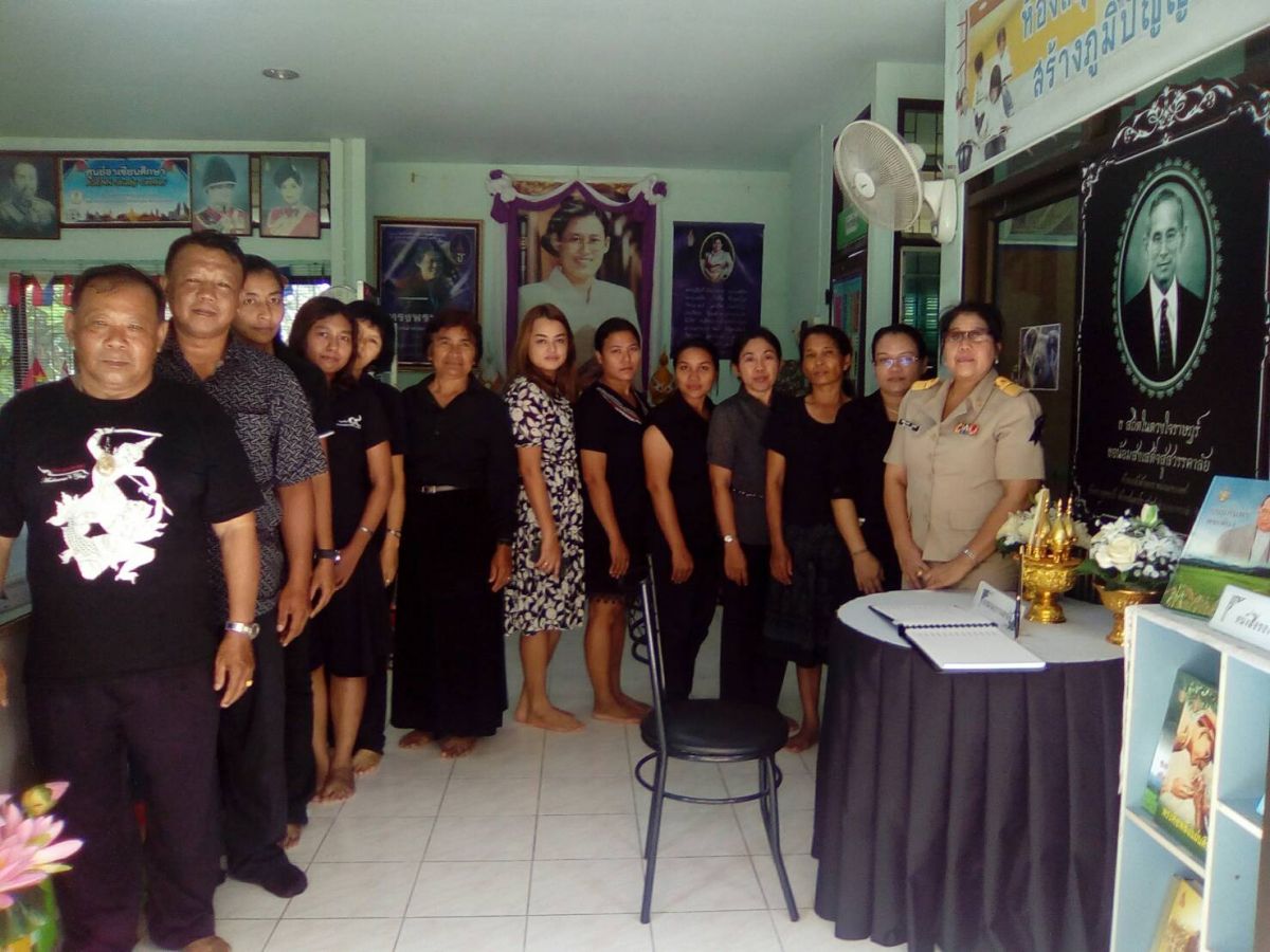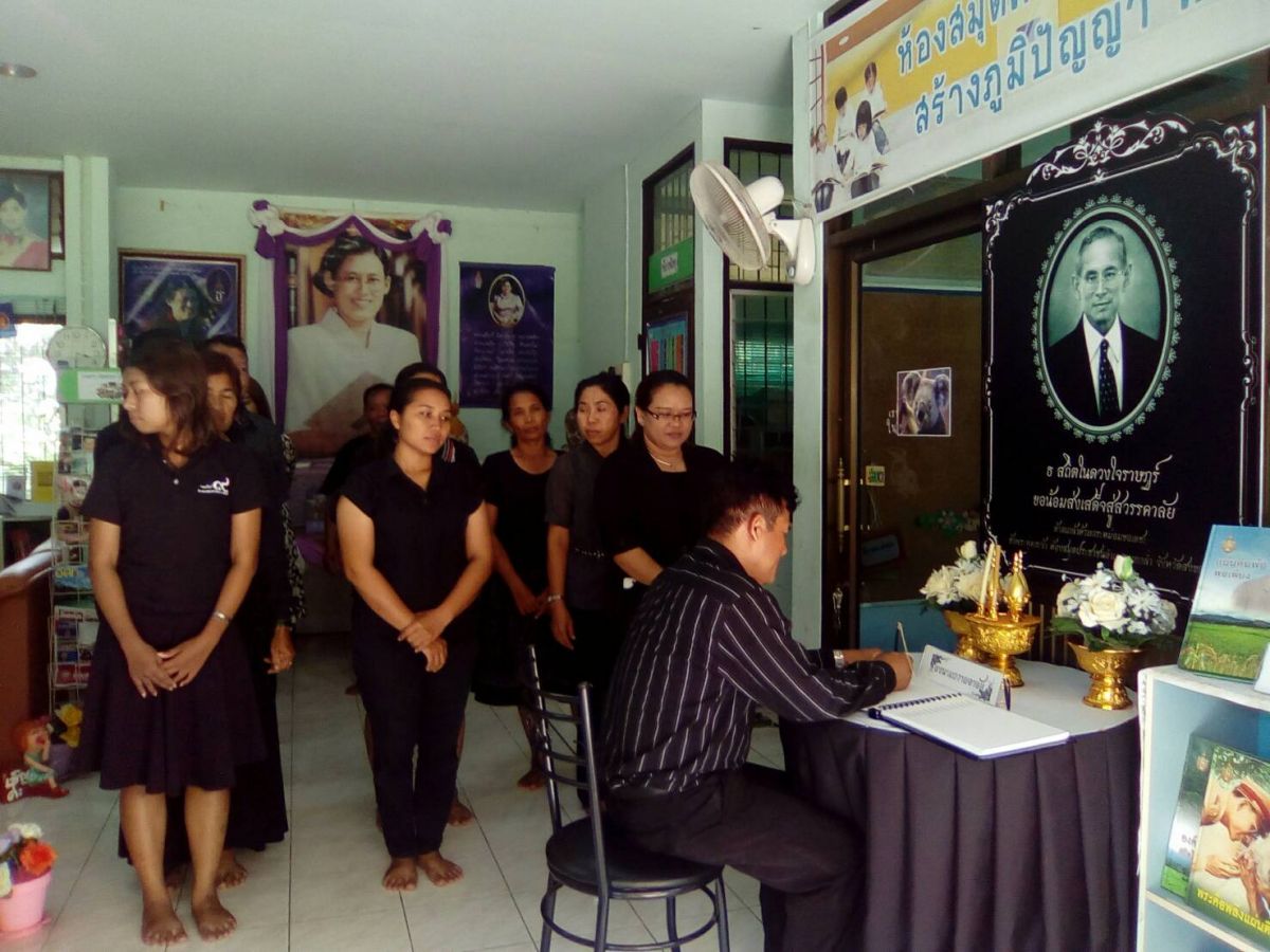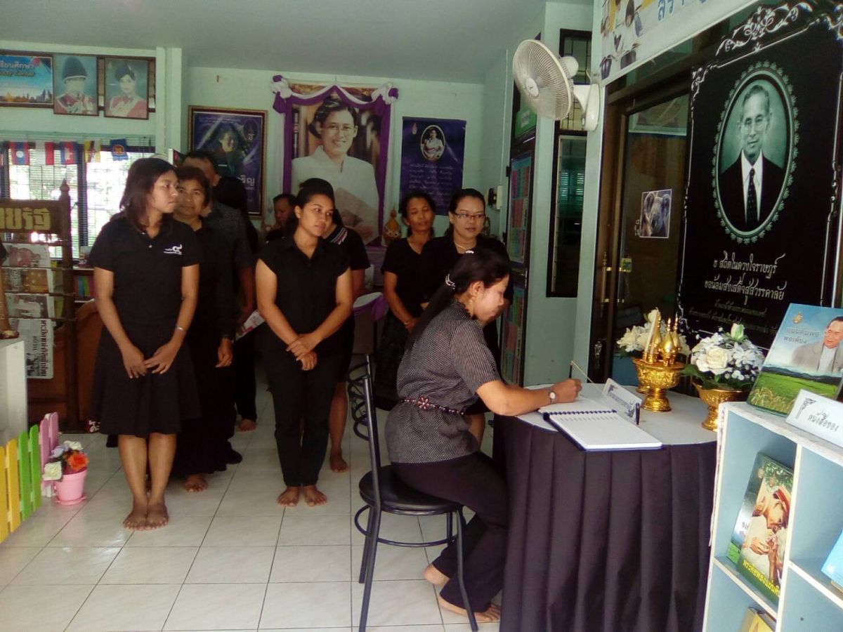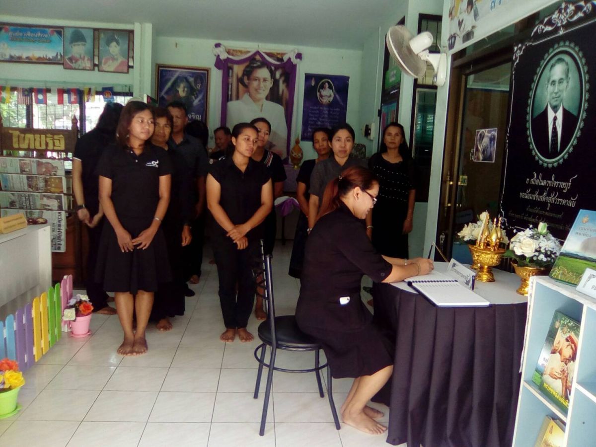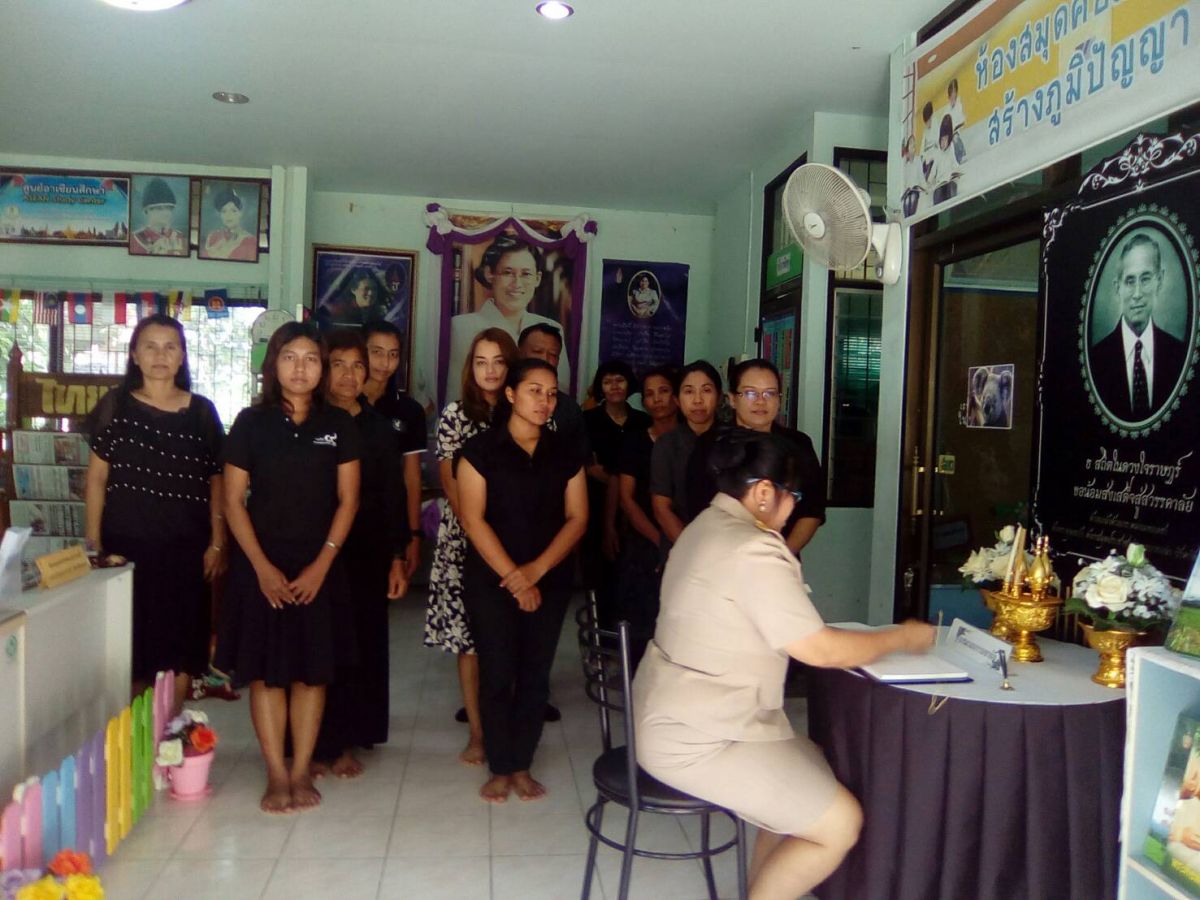 ผอ.กศน.อำเภอบางกล่ำ พร้อมบุคลากรกศน.อำเภอบางกล่ำ ร่วมลงนามถวายความอาลัยเบื้องหน้าพระบรมฉายาลักษณ์ ณ ห้องสมุดประชาชนอำเภอบางกล่ำ