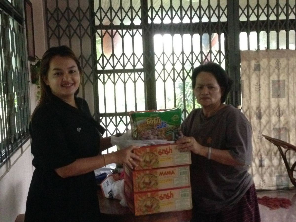 นางสาววสุพิศ เพิ่มพูล ครูผุ้สอนคนพิการตำบลท่าช้าง ลงพื้นที่รับบริจาคสิ่งของช่วยเหลือผู้ประสบภัยน้ำท่วม