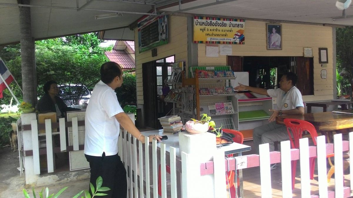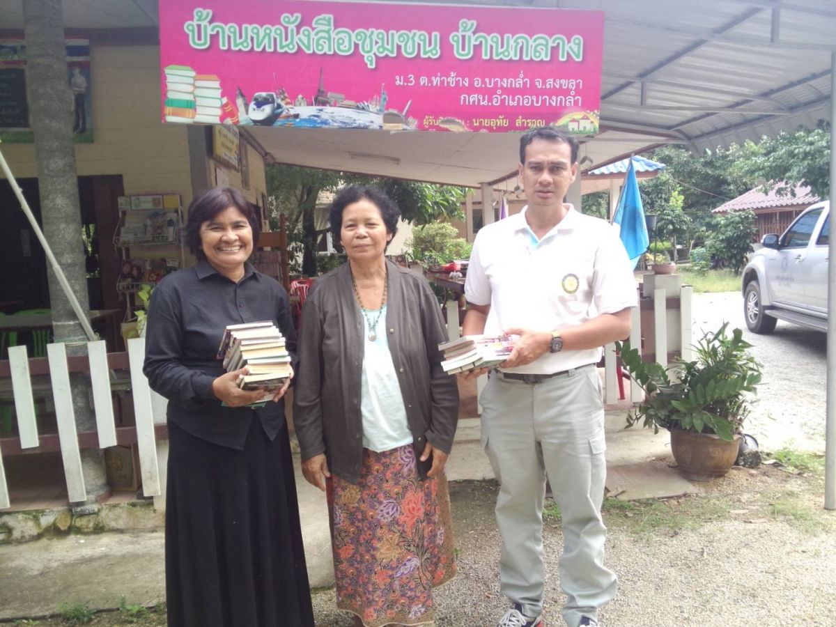 เจ้าหน้าที่เทศบาลตำบลท่าช้าง กองการศึกษา มอบหนังสือให้บ้านหนังสือชุมชนดีเด่นบ้านกลาง หมู่3 กศน.ตำบลท่าช้าง