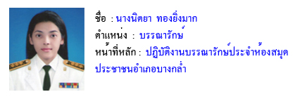 ศูนย์ส่งเสริมการเรียนรู้อำเภอบางกล่ำ  จังหวัดสงขลา 90110 โทร  0-7432-8026 Facebook : สกร.อำเภอบางกล่ำ  ksn.bangklam@gmail.com