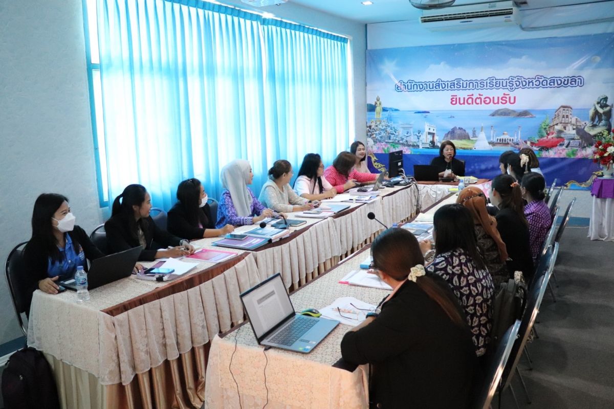 -ด้านการประเมินคุณภาพการจัดการศึกษาตามอัธยาศัย โดยมีนางโสเพ็ญ ย้อยอัด ผู้อำนวยการศูนย์ส่งเสริมการเรียนรู้อำเภอสะเดา เป็นวิทยากรพี่เลี้ยง