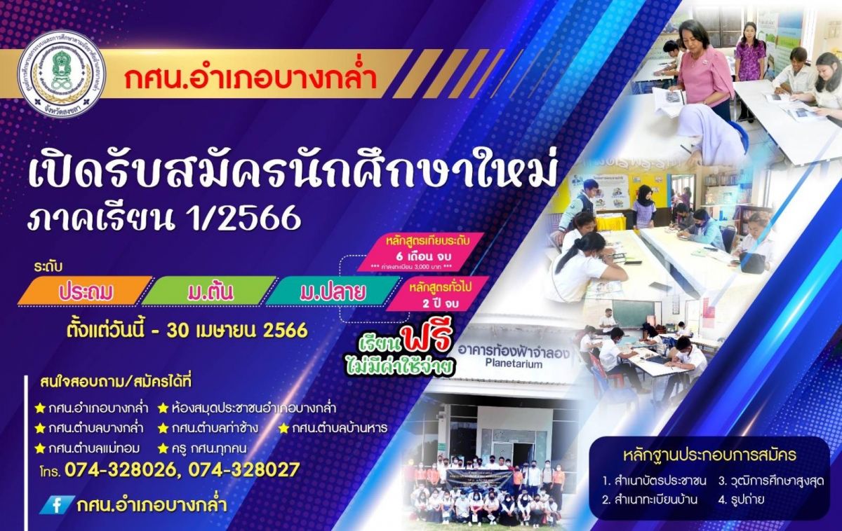 สนใจ สมัครได้ที่ กศ.อำเภอบางกล่ำ (074-3280 26) หรือสถานที่พบกลุ่ม ทั้ง 4 ตำบล