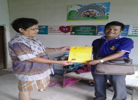 บุคลากร กศน.อำเภอบางกล่ำ ส่งมอบสื่อกิจกรรมรักการอ่านคร้งที่ 6 เรื่องเล่าก่อนเข้านอน