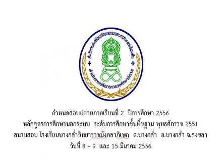 ตารางสอบปลายภาคเรียนที่ 2 ปีการศึกษา 2556 วันที่ 8 - 9 และ 15 มีนาคม 2557 ณ โรงเรียนบางกล่ำวิทยาราชมังคลาภิเษก