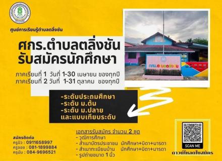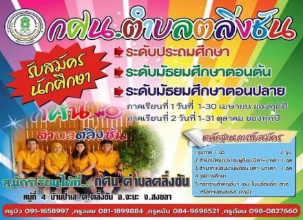 รับสมัครนักศึกษาใหม่ตั้งแต่บัดนี้จนถึงสิ้นเดือนเมษายน กศน.ตำบลตลิ่งชัน อำเภอจะนะ จังหวัดสงขลา ขับเคลื่อน การเรียนรู้ตลอดชีวิต สร้างโอกาสทางการศึกษาแก่คนทุกช่วงวัย ที่นี่ไม่มีใครอายุเกินที่จะเรียนรู้ ขอแค่มีความมุมานะและตั้งใจจริง |