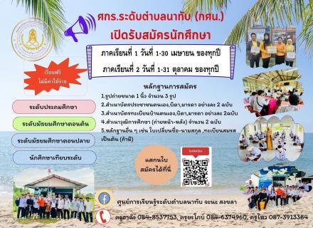 ศูนย์การเรียนรู้ระดับตำบลนาทับ เปิดรับสมัครนักศึกษาใหม่ ภาคเรียนที่ 2 ปีการศึกษา 2568 เรียนฟรีไม่มีค่าใช้จ่าย  เข้าชม :  [0]