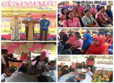 วันที่ 23 กุมภาพันธ์ 2559 งานเมาลิดสัมพันธ์ กศน.จะนะ ครั้งที่ 2/2559 กิจกรรมรัวคุณธรรมตามแบบฉบับของท่านศาสดามูฮัมหมัด(ซ.ล.) สู่..สังคมสันติสุข ณ สถาบันศึกษาปอเนาะต้นมะขาม ต.คู อ.จะนะ จ. สงขลา