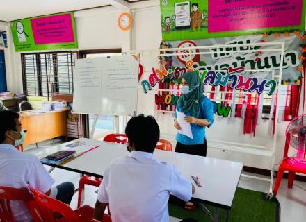 กศน.ตำบลบ้านนาพบกลุ่มนักศึกษาระดับประถม ม.ต้นและม.ปลาย ในวันที่ 9 ธันวาคม 2563 โดยมีนางอาแอเสาะ หลีจำเริญ ครูที่ปรึษากศน.ตำบลบ้านนา มาตรวจเยี่ยมการจัดการเรียนการสอน |