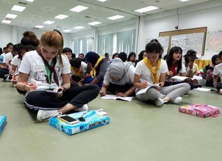 วันที่19 ก.ค.60 ภาพกิจกรรมค่ายยุวกาชาดให้ความรู้ในหัวข้อกฎหมายมนุษยธรรมและรอบโลกกาชาด