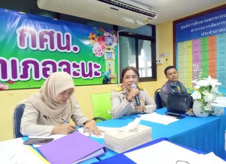 กิจกรรมประชุมประจำสัปดาห์ เพื่อชี้แจงข้อราชการจากหน่วยงานต้นสังกัด จากการประชุมหัวหน้าส่วนราชการ และติดตามการขับเคลื่อนงานประกันคุณภาพการศึกษาของสถานศึกษา ณ ห้องประชุม กศน.อำเภอจะนะ