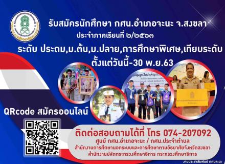 ประชาสัมพันธ์ กศน.อำเภอจะนะ รับสมัครนักศึกษาใหม่ ตั้งแต่วันนี้ถึงวันที่ 30 พฤศจิกายน 2563