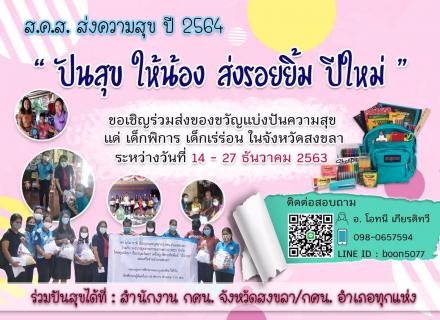 ขอเชิญร่วมส่งของขวัญแบ่งปันความสุขแด่ เด็กพิการ เด็กเร่ร่อน ในจังหวัดสงขลา ระหว่างวันที่ 14 -27 ธันวามค 2563
