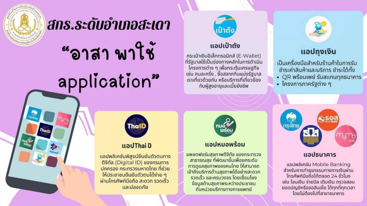 นางจีรวรรณ์ ปัตตะพัฒน์ ผู้อำนวยการศูนย์ส่งเสริมการเรียนรู้ระดับอำเภอจะนะ มอบหมายให้บุคลากรครู สกร.ระดับอำเภอจะนะ จัดกิจกรรม "อาสาพาใช้ แอปพลิเคชั่น" เรื่องการรู้เท่าทันเทคโนโลยี (Digital Literacy)โดยเน้นให้ประชาชนสามารถใช้แอพพลิเคชันที่เกี่ยวข้องกับการดำเนินชีวิตประจำวัน เช่น แอพเป๋าตัง แอพถุงเงิน แอพธนาคารต่าง ๆ หรือแอพหมอพร้อม เป็นต้น