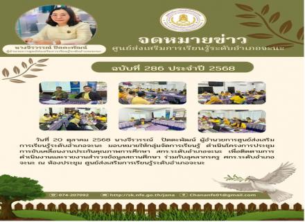 วันที่ 20 ตุลาคม 2568 นางจีรวรรณ์ ปัตตะพัฒน์ ผู้อำนวยการศูนย์ส่งเสริมการเรียนรู้ระดับอำเภอจะนะ มอบหมายให้บุคลากรครู สกร.ระดับอำเภอจะนะ จัดกิจกรรม \"อาสาพาใช้ แอปพลิเคชั่น\" เรื่องการรู้เท่าทันเทคโนโลยี (Digital Literacy)โดยเน้นให้ประชาชนสามารถ  เข้าชม :  [1]
