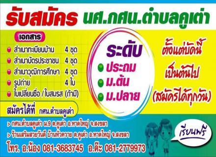 ศกร.ตำบลคูเต่า เปิดรับสมัครนักศึกษาใหม่แล้วจร้า