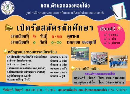 รับสมัครนักศึกษาใหม่ ภาคเรียนที่ 2 ปีการศึกษา 2564 ณ กศน.ตำบลคลองหอยโข่ง