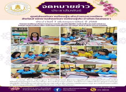เมื่อวันที่ 27 มกราคม 2568 นางนงนุช สิธิราม ครูชำนาญการ รักษาการในตำแหน่ง ผู้อำนวยการศูนย์ส่งเสริมการเรียนรู้ระดับอำเภอควนเนียง พร้อมด้วยคณะครูและบุคลการ ศูนย์ส่งเสริมการเรียนรู้ระดับอำเภอควนเนียง ร่วมประชุมประจำสัปดาห์