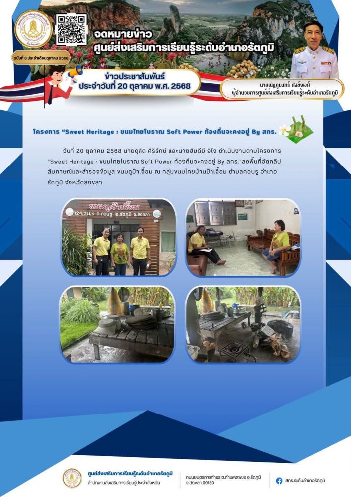 ดำเนินงานตามโครงการ “Sweet Heritage : ขนมไทยโบราณ Soft Power ท้องถิ่นจะคงอยู่ By สกร.”
