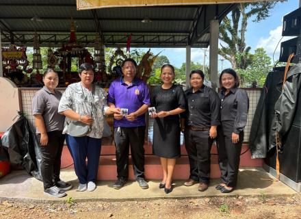 นางสาวธัญญ์ลักษณ์ ขจรสกุลวงศ์ ผู้อำนวยการศูนย์ส่งเสริมการเรียนรู้ระดับอำเภอควนเนียง พร้อมด้วยคณะครู และบุคลากร ร่วมทำกิจกรรม มอบริบบิ้นดำถวายอาลัย ให้กับผู้ที่มาร่วมบุญทอดกฐิน จำนวน 90 ชิ้น  เข้าชม :  [29]