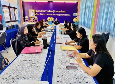 นางสาวธัญญ์ลักษณ์ ขจรสกุลวงศ์ ผู้อำนวยการศูนย์ส่งเสริมการเรียนรู้ระดับอำเภอควนเนียง พร้อมทั้งคณะครู และบุคลากร ศูนย์ส่งเสริมการเรียนรู้ระดับอำเภอควนเนียง ประชุมวางแผน และติดตามผลการดำเนินงานประจำสัปดาห์