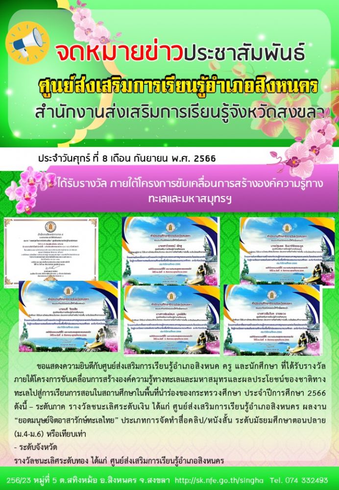 ศูนย์ สกร.ระดับอำเภอสิงหนคร 5 อันดับล่าสุด