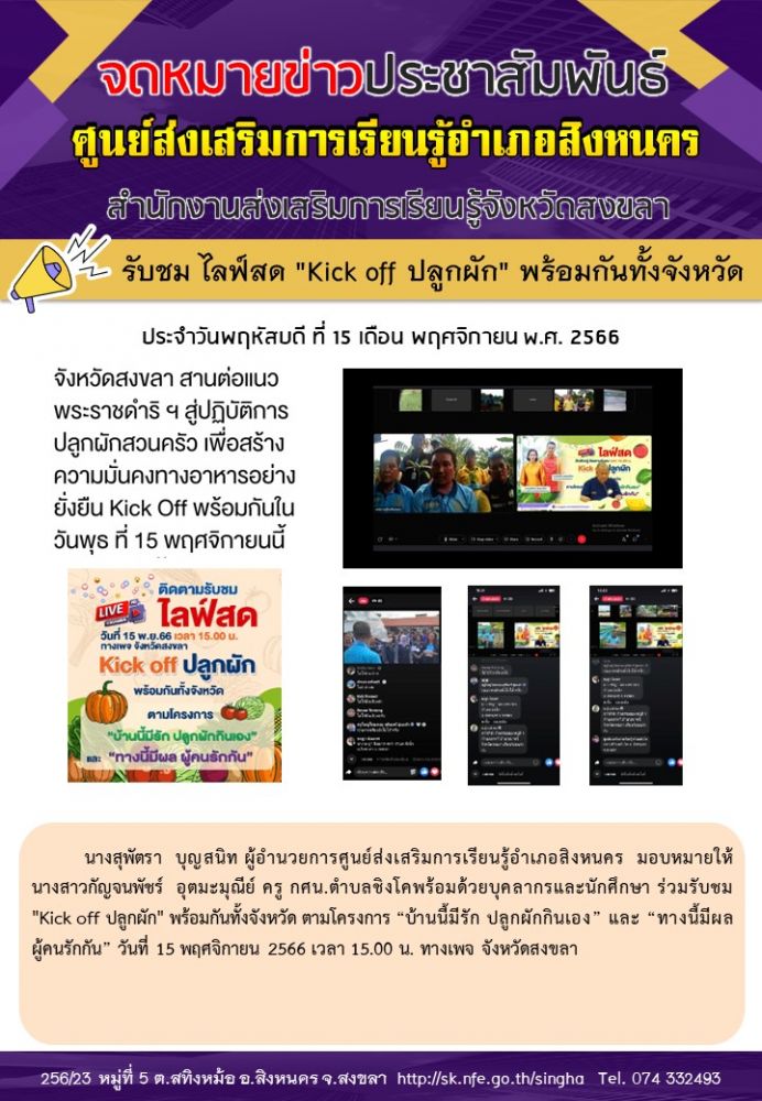 รับชม ไลฟ์สด \"Kick off ปลูกผัก\" พร้อมกันทั้งจังหวัด