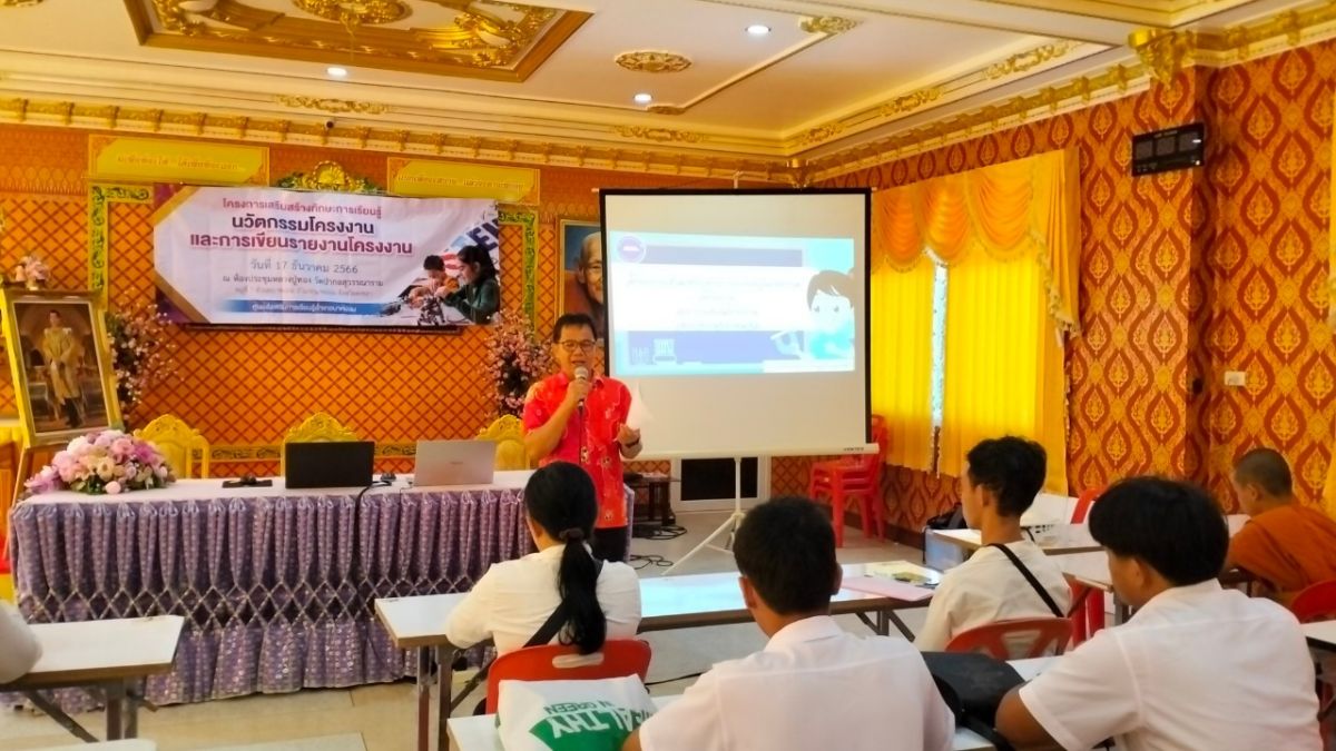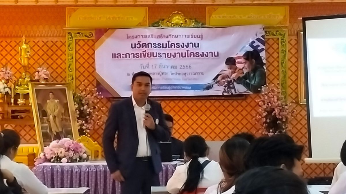 วันที่ 17 ธันวาคม 2566 นางสุนิตย์ ไชยถาวร ผู้อำนวยการ สกร.อำเภอนาหม่อม พร้อมด้วยนายสุทิพย์ แก้วสุวรรณ ครูอาสาสมัคร กศน. และคณะครู ร่วมจัดกิจกรรมพัฒนาคุณภาพผู้เรียน โครงการเสริมสร้างทักษะการเรียนรู้นวัตกรรมโครงงานและการเขียนรายงานโครงงาน ให้กับนักศึกษา สกร.อำเภอนาหม่อม ณ วัดป่ากอสุวรรณาราม ตำบลนาหม่อม อำเภอนาหม่อม จังหวัดสงขลา