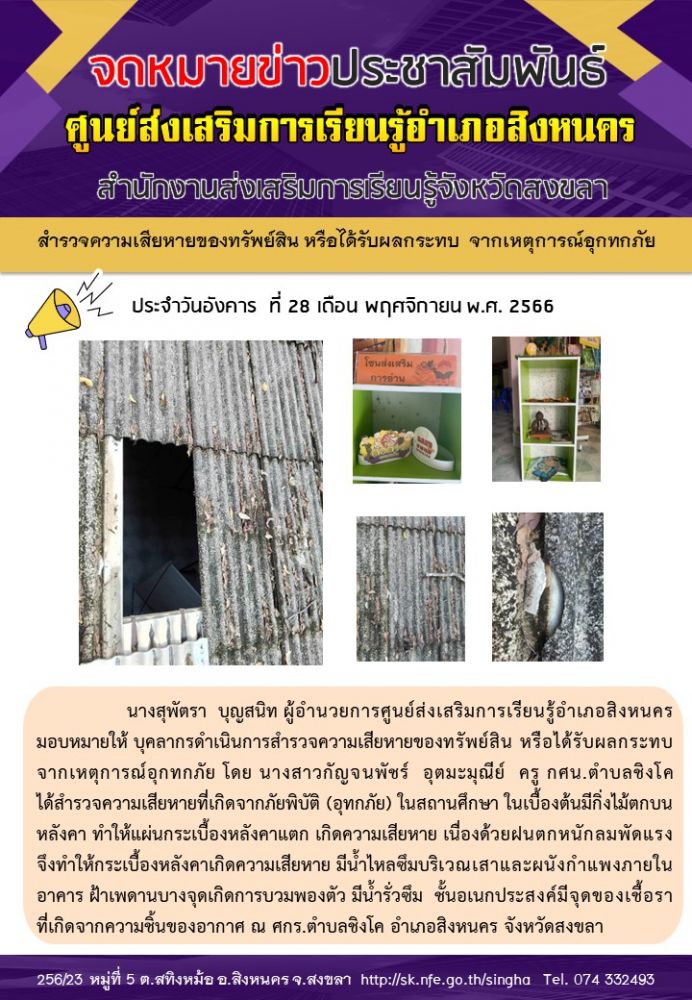 สำรวจความเสียหายของทรัพย์สิน หรือได้รับผลกระทบ จากเหตุการณ์อุกทกภัย