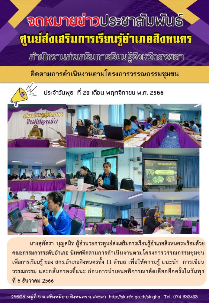 ติดตามการดำเนินงานตามโครงการวรรณกรรมชุมชน