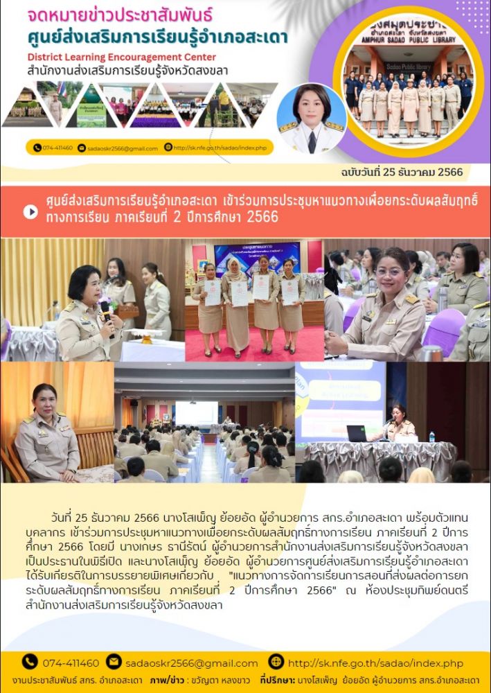 ศูนย์ส่งเสริมการเรียนรู้อำเภอสะเดา เข้าร่วมการประชุมหาแนวทางเพื่อยกระดับผลสัมฤทธิ์ทางการเรียน ภาคเรียนที่ 2 ปีการศึกษา 2566