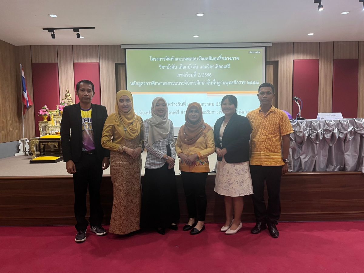 วันที่ 8-9 มกราคม 2567 นายวิเชียร โชติช่วง ผอ.สกร.อำเภอจะนะ มอบหมายให้ ครู สกร.อำเภอจะนะ ว่าที่ ร.ต.ฤทธา ภารา นายปริญญา ศรีสุก นางสาวอาฉ๊ะ หมัดอาด้ำ นางสาวกิ่งกาญจน์ ฤทธิ์ทอง นางสาวซานีย๊ะ แวมะ นางสาววรรณภา เพ็ชรจูด เข้าร่วมโครงการจัดทำแบบทดสอบวัดผลสัมฤทธิ์กลางภาควิชาบังคับ เลือกบังคับ และวิชาเลือกเสรี ภาคเรียนที่ 2 ปีการศึกษา 2566 หลักสูตรการศึกษานอกระบบระดับการศึกษาขั้นพื้นฐาน พุทธศักราช 2551 ณ ห้องประชุมทิพย์ดนตรี สำนักงานส่งเสริมการเรียนรู้จังหวัดสงขลา