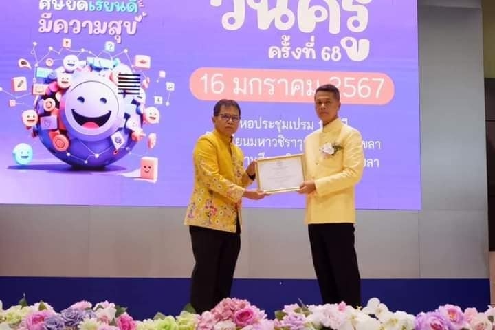 วันที่ 16 มกราคม 2567 สกร. อำเภอนาหม่อม ขอแสดงความยินดีกับบุคลากร สกร.อำเภอนาหม่อม พร้อมด้วยนักศึกษา ที่เข้ารับรางวัลเนื่องในวันครู ครั้งที่ 68 ประจำปี 2567 โดยมีนายสมนึก พรหมเขียว ผู้ว่าราชการจังหวัดสงขลา เป็นประธานในพิธี ณ หอประชุมเปรม 100 ปี โรงเรียนมหาวชิราวุธ จังหวัดสงขลา ดังนี้ 1. นายสุทิพย์ แก้วสุวรรณ ครูอาสาสมัคร กศน. ประเภท ครูอาสาสมัคร กศน.ดีเด่น 2. นายนิวัฒน์ อำมะโร ประเภท ศิษย์ปัจจุบันดีเด่น