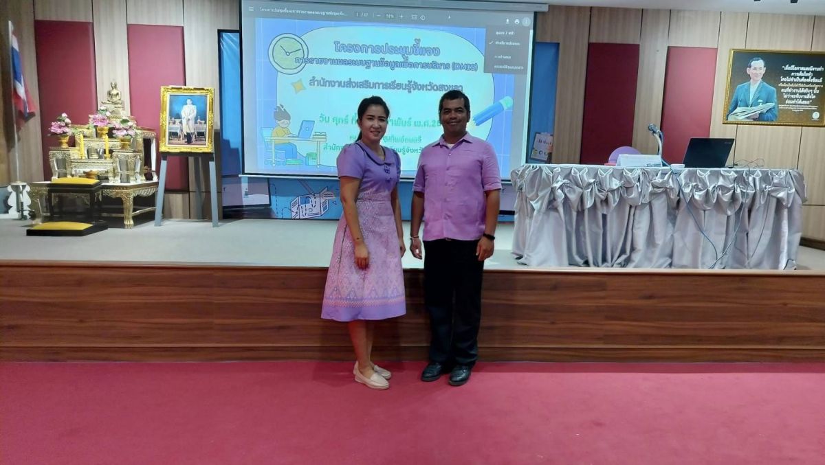 วันที่ 16 กุมภาพันธ์ 2567 เวลา 08.30 - 16.30 น. นางสุนิตย์ ไชยถาวร ผู้อำนวยการศูนย์ส่งเสริมการเรียนรู้อำเภอนาหม่อม มอบหมายให้ นางสาวสิรินดา นวลละออง ตำแหน่ง ครู กศน.ตำบล พร้อมด้วย นายอัฆเดช ครุวรรณพัฒน์ ตำแหน่งนักจัดการงานทั่วไป เข้าร่วมโครงการประชุมชี้แจงการรายงานผลระบบฐานข้อมูลเพื่อการบริหารจัดการ (DMIS) สกร.จังหวัดสงขลา ณ ห้องประชุมทิพย์ดนตรี (ชั้น 2) สำนักงานส่งเสริมการเรียนรู้จังหวัดสงขลา โดยได้รับเกียรติจาก นางสาวบุปผาชาติ เรืองกูล รองผู้อำนวยการสำนักงานส่งเสริมการเรียนรู้จังหวัดสงขลา เป็นประธานในพิธีเปิด