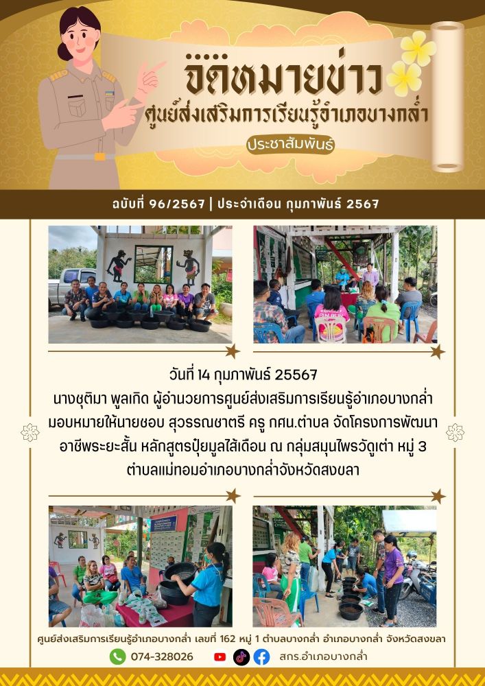 จัดกระบวนการเรียนรู้รายวิชา สังคมศึกษา ระดับมัธยมศึกษาตอนปลาย ณ ศูนย์การเรียนรู้ระดับตำบลบางกล่ำ 19 / ม.ค. / 2569
