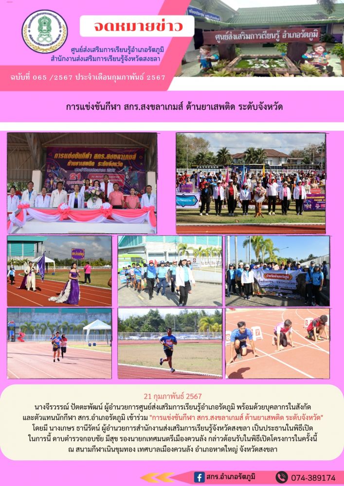 เข้าร่วมโครงการแข่งขันกีฬา สกร.สงขลาเกมส์ ต้านยาเสพติด ระดับจังหวัด ประจำปีงบประมาณ พ.ศ. 2567