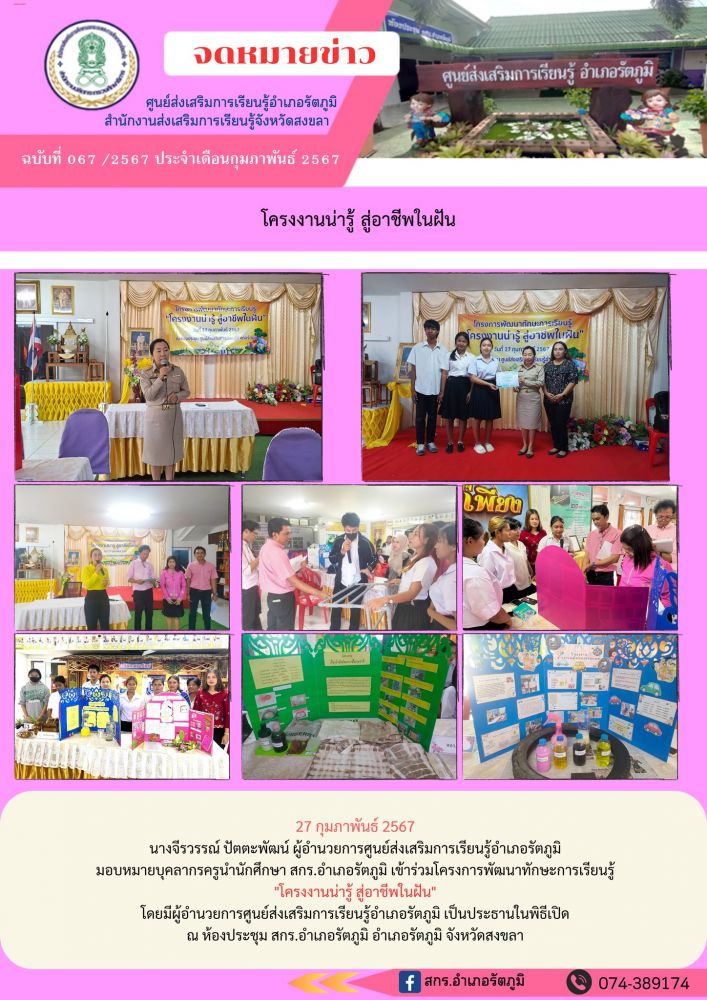 โครงการพัฒนาทักษะการเรียนรู้ \"โครงงานน่ารู้ สู่อาชีพในฝัน\"