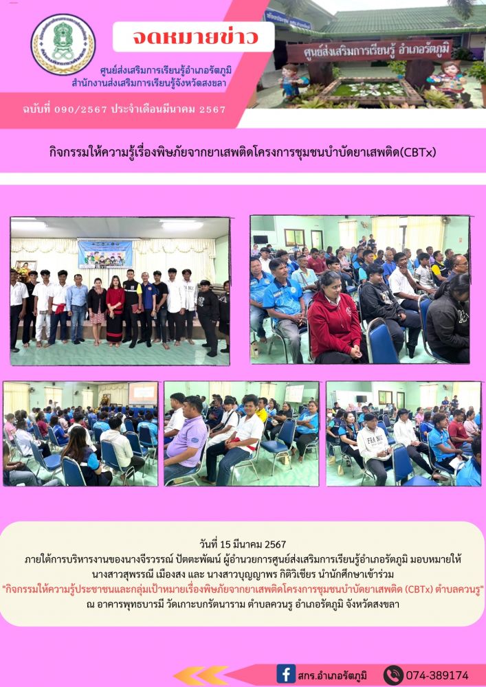 เข้าร่วมกิจกรรมให้ความรู้ ประชาชนและกลุ่มเป้าหมายเรื่องพิษภัยจากยาเสพติด โครงการชุมชนบำบัดยาเสพติด (CBTx)