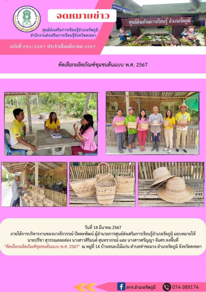 ดำเนินการลงพื้นที่ \"คัดเลือกผลิตภัณฑ์ชุมชนต้นแบบ พ.ศ. 2567\"