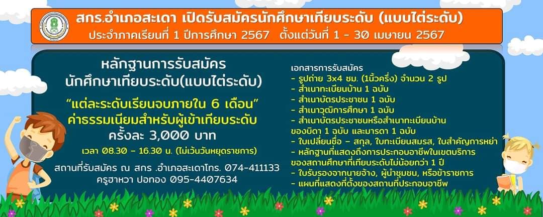 ศูนย์ส่งเสริมการเรียนรู้อำเภอสะเดา รับสมัครนักศึกษาใหม่ ภาคเรียนที่ 1 ปีการศึกษา 2567