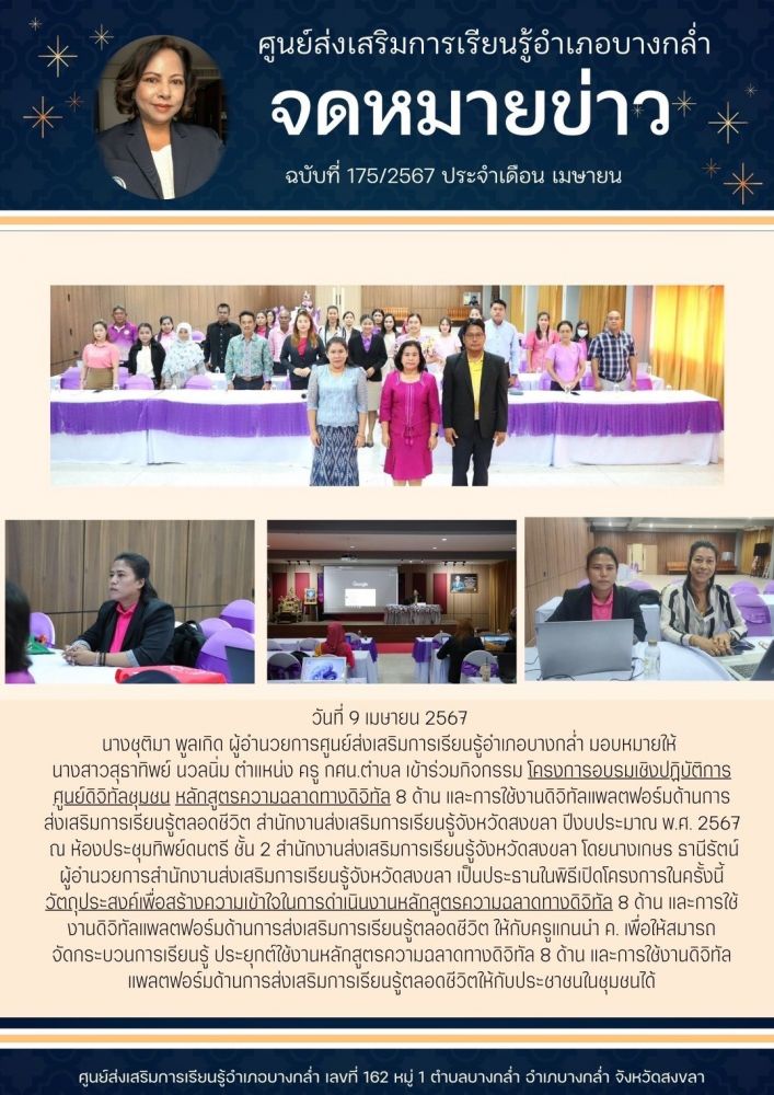 เข้าร่วมกิจกรรม #โครงการอบรมเชิงปฏิบัติการศูนย์ดิจิทัลชุมชน #หลักสูตรความฉลาดทางดิจิทัล 8 ด้าน และการใช้งานดิจิทัลแพลตฟอร์มด้านการส่งเสริมการเรียนรู้ตลอดชีวิต