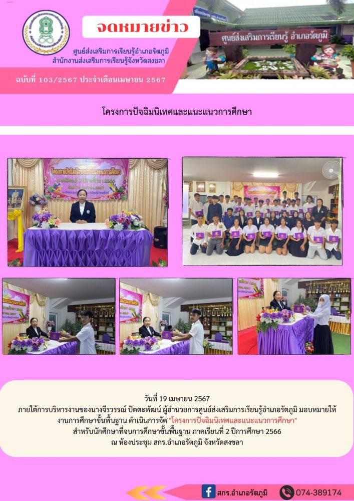 บกิจกรรมปัจฉิมนิเทศและแนะแนวการศึกษา สำหรับนักศึกษาที่จบการศึกษาขั้นพื้นฐาน ภาคเรียนที่ ๒ ปีการศึกษา ๒๕๖๖