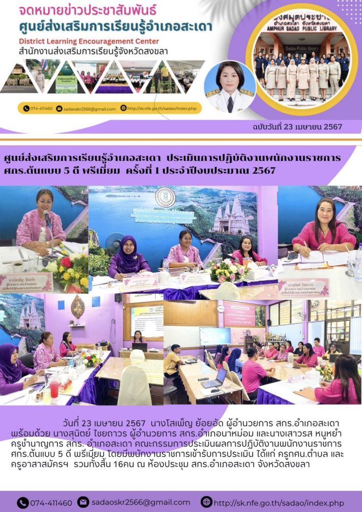 ศูนย์ส่งเสริมการเรียนรู้อำเภอสะเดา ประเมินการปฏิบัติงานพนักงานราชการ ศกร.ต้นแบบ 5 ดีื พรีเมี่ยม ครั้งที่ 1 ประจำปีงบประมาณ 2567