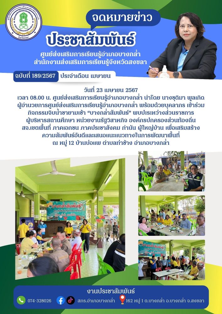 สกร.อำเภอบางกล่ำ เข้าร่วมกิจกรรมจิบน้ำชายามเช้า “บางกล่ำสัมพันธ์”