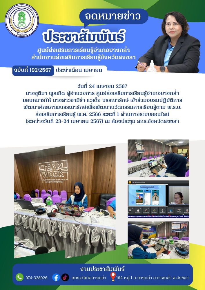 ข้าร่วมอบรมปฏิบัติการพัฒนาศักยภาพบรรณารักษ์เพื่อพัฒนานวัตกรรมการเรียนรู้ตาม พ.ร.บ. ส่งเสริมการเรียนรู้ พ.ศ. 2566 ระยะที่ 1 ผ่านทางระบบออนไลน์