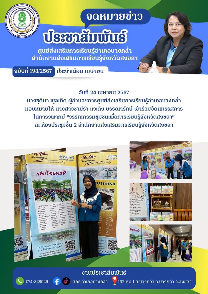 เข้าร่วมจัดนิทรรศการในการวิพากษ์ “วรรณกรรมชุมชนเพื่อการเรียนรู้จังหวัดสงขลา”
