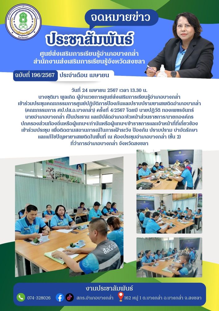 เข้าร่วมประชุมคณะกรรมการศูนย์ปฏิบัติการป้องกันและปราบปรามยาเสพติดอำเภอบางกล่ำ (คณะกรรมการ ศป.ปส.อ.บางกล่ำ) ครั้งที่ 4/2567