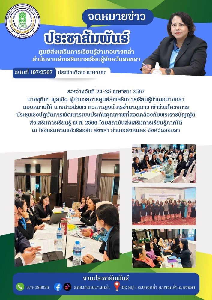 เข้าร่วมโครงการประชุมเชิงปฏิบัติการพัฒนาระบบประกันคุณภาพที่สอดคล้องกับพระราชบัญญัติส่งเสริมการเรียนรู้ พ.ศ. 2566