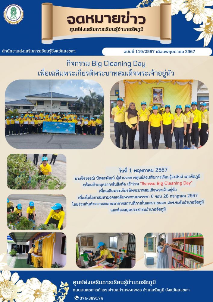 “กิจกรรม Big Cleaning Day” เพื่อเฉลิมพระเกียรติพระบาทสมเด็จพระเจ้าอยู่หัว เนื่องในโอกาสมหามงคลเฉลิมพระชนมพรรษา 6 รอบ 28 กรกฎาคม 2567