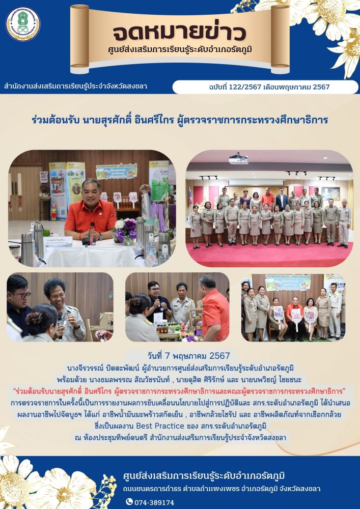 ร่วมต้อนรับนายสุรศักดิ์ อินศรีไกร ผู้ตรวจราชการกระทรวงศึกษาธิการและคณะผู้ตรวจราชการกระทรวงศึกษาธิการ